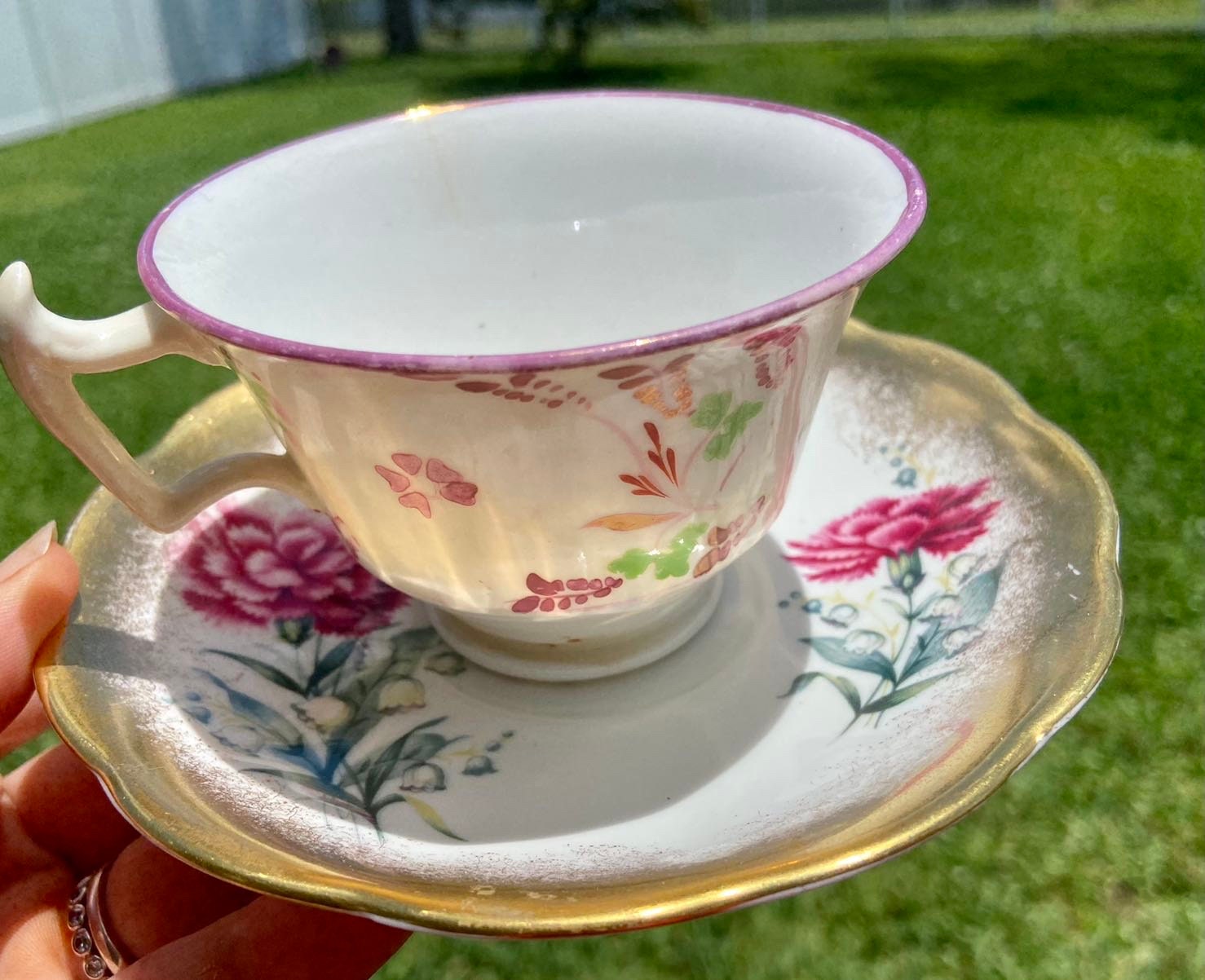 Beautiful vintage Japan Floral Tea Cup and Saucer. Unique set! Beautiful flowers. Love this set! Set is mismatched but perfect together.