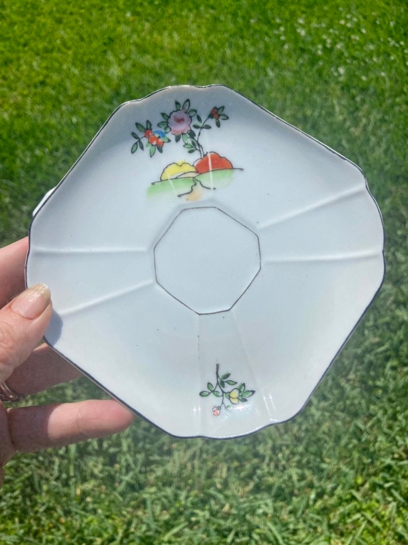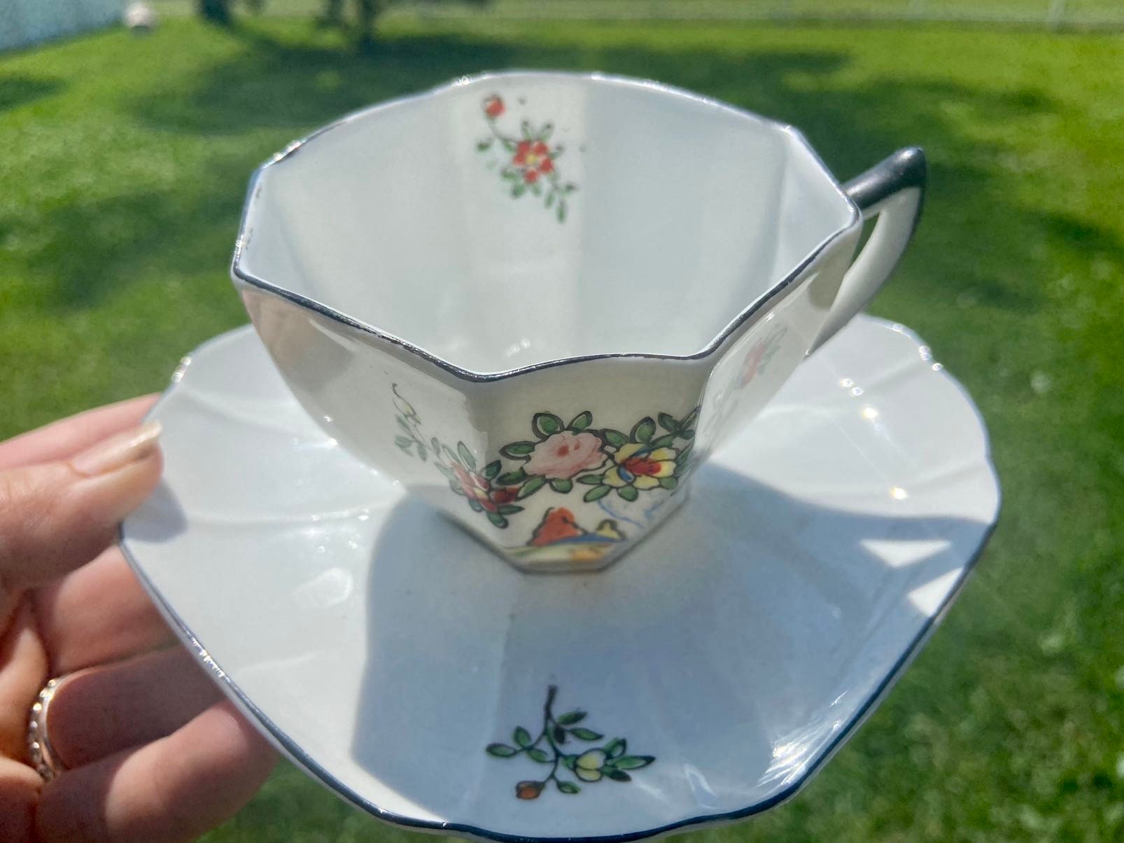 Beautiful vintage Japan Floral Tea Cup and Saucer. Unique set! Beautiful village scene. . Love this set!