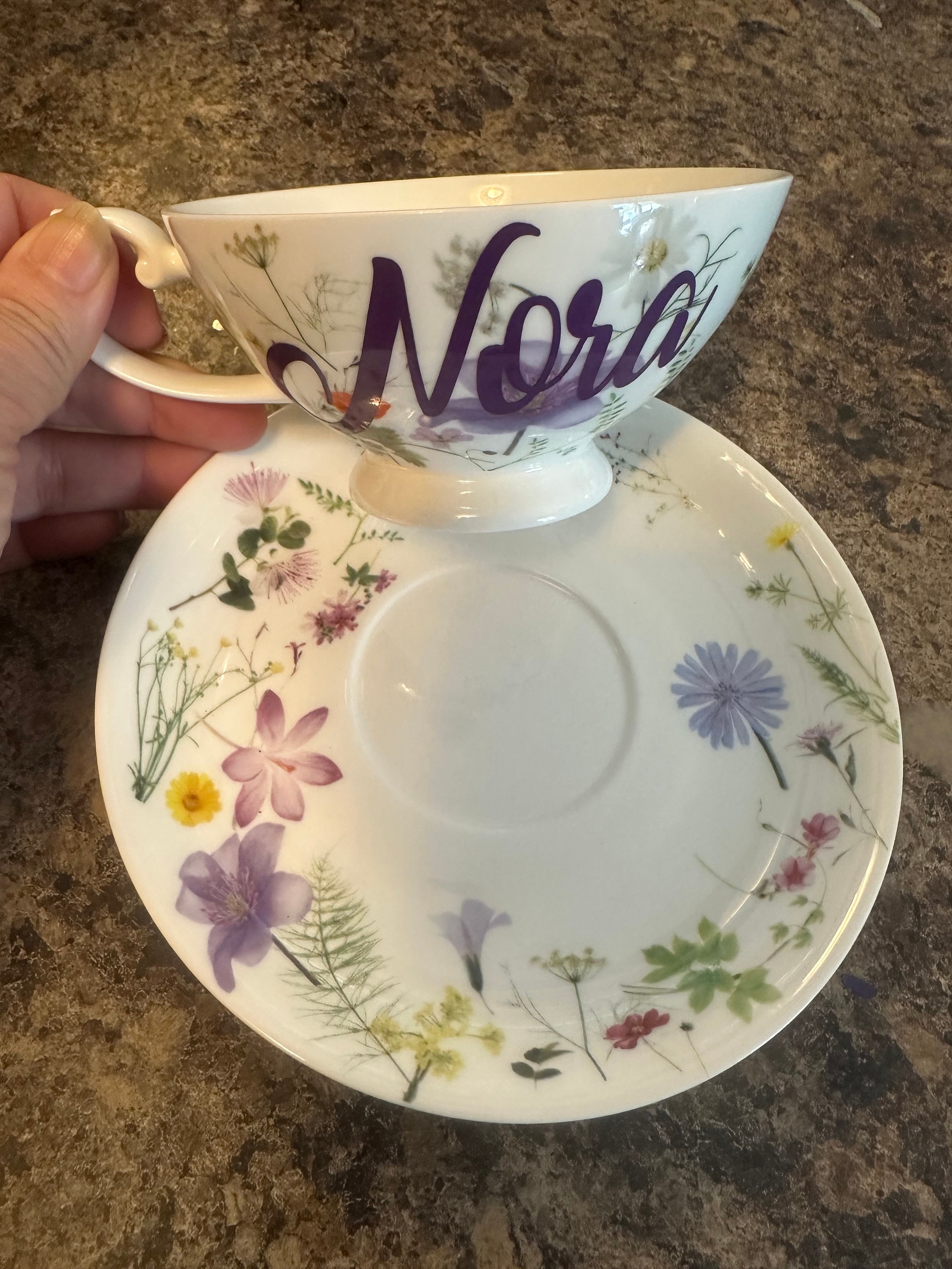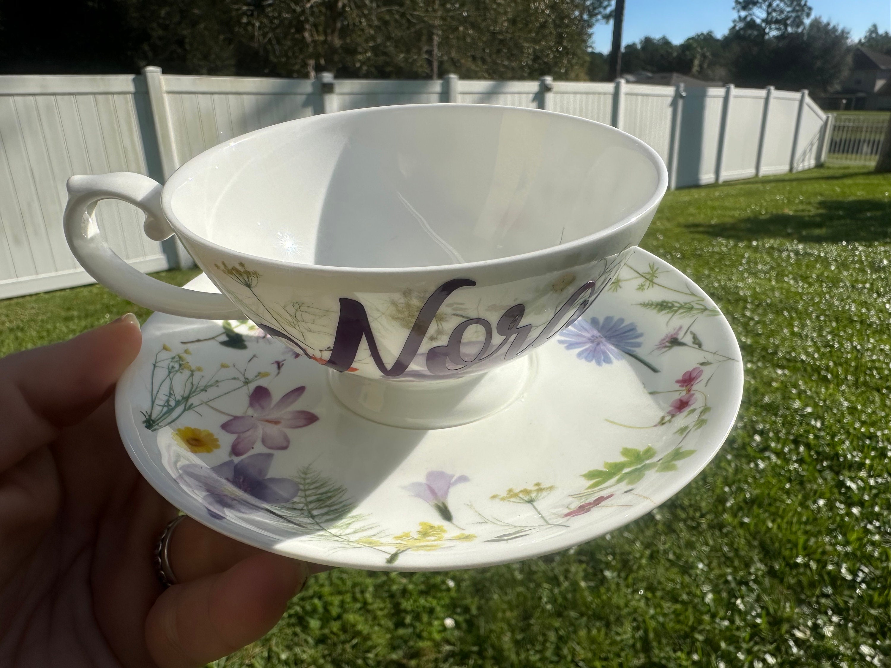 Personalized teacup. Teacup is 10oz and saucer is 6 inches.