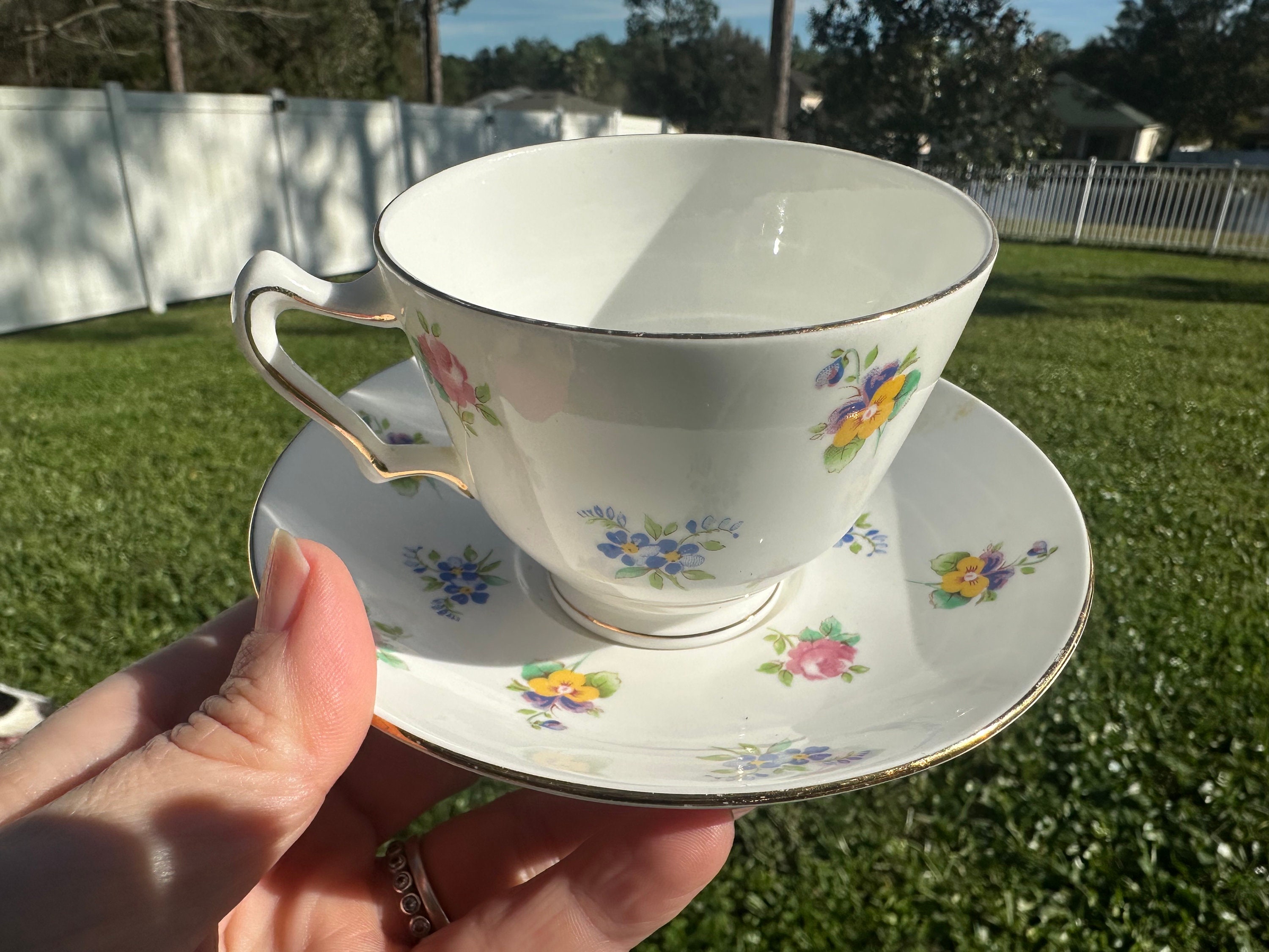 Beautiful rare Rose English Tea Cup and Saucer Tea cup adored with English roses. Staffordshire China.